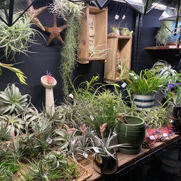 Fresh plants arrive weekly to maintain our indoor oasis full of tropical foliage, brilliant succulents, and local pottery.